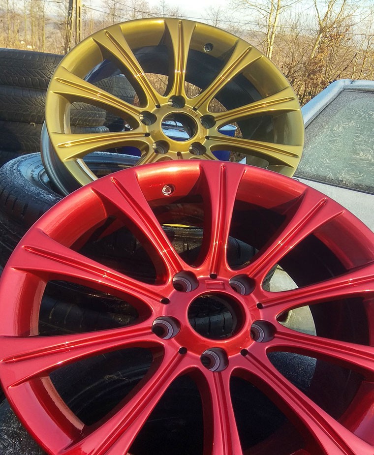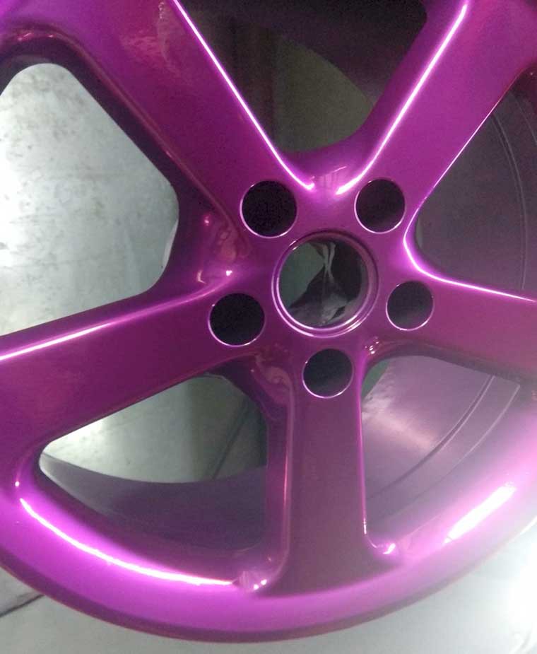 Felga pokryta lakierem transparentnym, co daje cukierkowy efekt candy